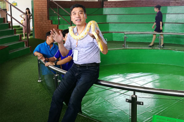 6天內(nèi)我們先后參觀了泰國(guó)著名學(xué)府【清邁大學(xué)】、【雙龍寺】、【泰囧布帕蘭廟】、【三王紀(jì)念廣場(chǎng)】、【銀廟】、【白廟】、【金三角大佛及金山角牌坊】等風(fēng)景名勝;觀看了泰國(guó)特色人妖表演;暢游湄公河;更有幸與大象及黃金蟒親密接觸;并享受鱷魚及金剛王眼鏡蛇表演的心跳刺激。