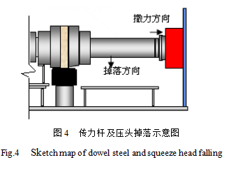 主機(jī)最大加載能力:最大壓力450kN,荷載精度:<0.5% F.S;加載系統(tǒng)三向獨立,通過三向剛性壓頭實現(xiàn)對試件均勻加載,單方向可快速卸載使傳力桿及加載壓頭快速掉落,暴露該方向的試件表面,見圖4傳力桿及壓頭掉落示意圖。