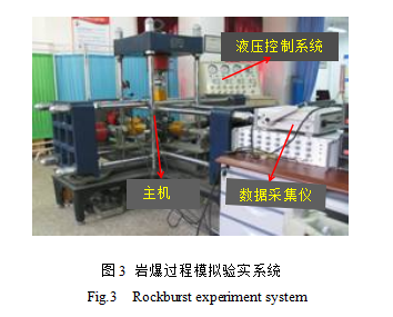 深部巖爆過程模擬實驗系統(tǒng)由主機(jī)、液壓控制系統(tǒng)和數(shù)據(jù)采集系統(tǒng)三大部分組成,如圖3所示。